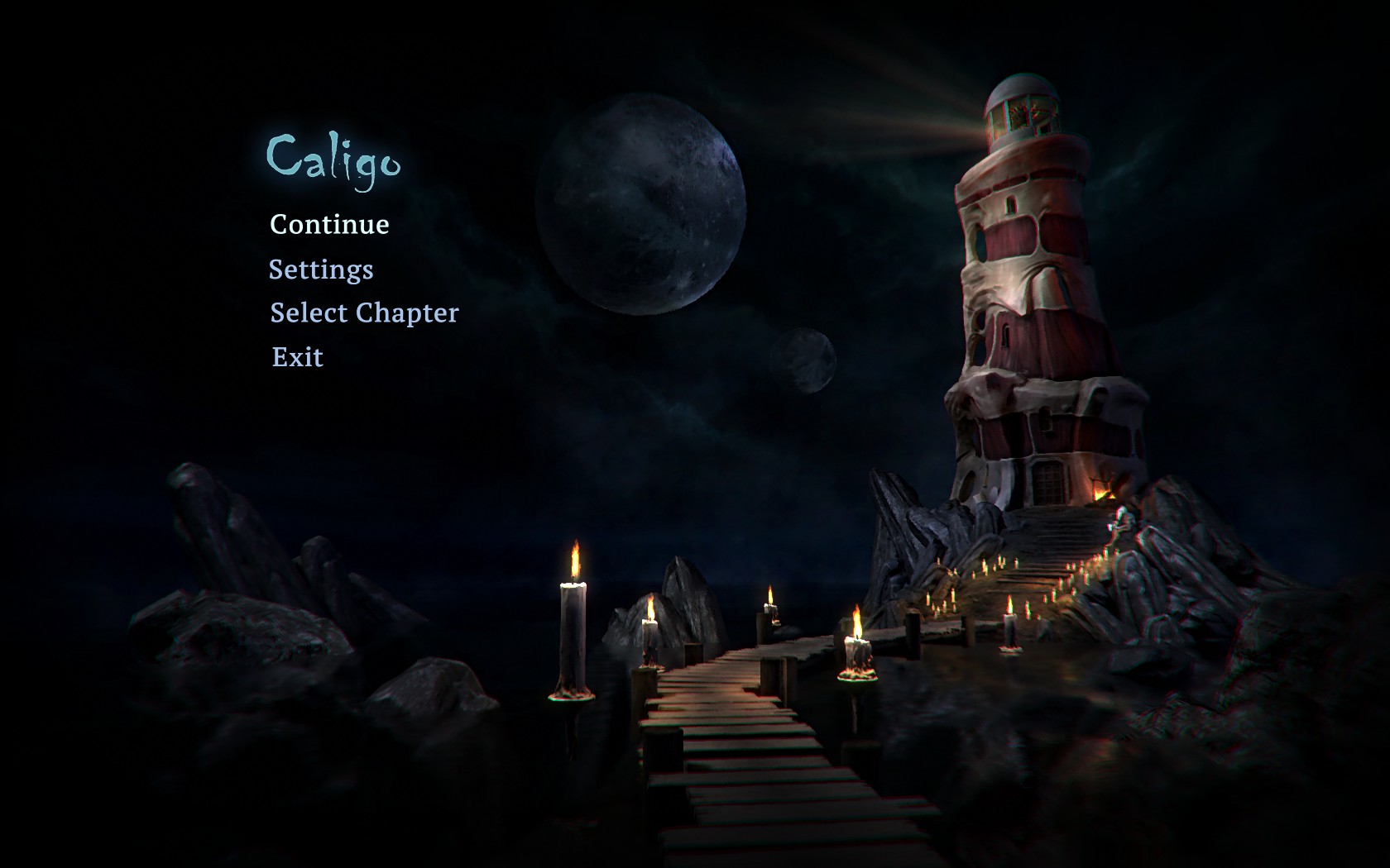 Comme dit plus haut, les différents endroits traversés dans Caligo sont tous extrêmement différents mais ont chacun quelque chose à dire. Le premier est, par exemple, le souvenir ému du narrateur d’une partie de son enfance, le tout baignant dans une atmosphère proche du merveilleux, littéralement. On s’attendrait presque à voir surgir une licorne ou un leprechaun de derrière un bosquet. L’idée centrale de ce niveau, outre les souvenirs d’enfance, tourne autour de la lecture et du plaisir qu’il peut y avoir à créer des mondes. Idée qui trouve un écho avec la création artistique autour du jeu. Le narrateur évoquant ses souvenirs se confond alors avec le créateur du jeu lui-même pour donner un dialogue intéressant sur le rôle et la portée du créateur.