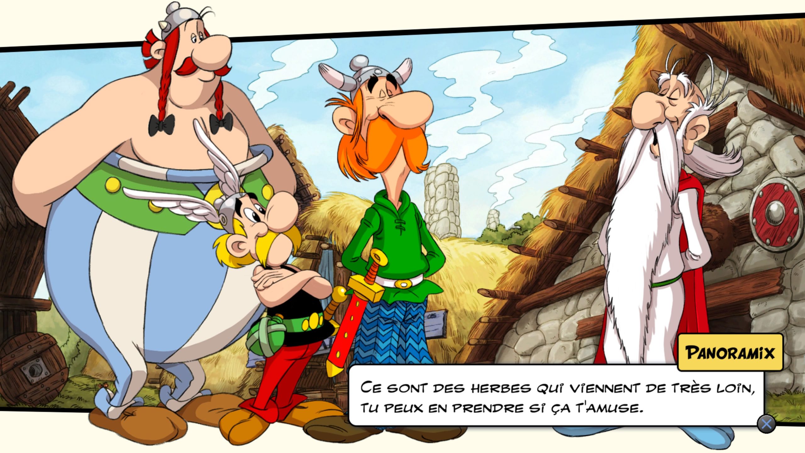 Que c’est beau ! On a l’impression de se balader dans les pages de la bande dessinée, la direction artistique et l’animation font l’âme et la fluidité du jeu et apportent un véritable atout. De plus, c’est fort amusant de retrouver les personnages connus de la saga des Gaulois entre les habitants du village, Ocatarinetabelatchitchix, Pépé, Jolitorax, etc. Et le tout avec une plume fidèle aux dessins d’Uderzo. Sans oublier les musiques et le sound design toujours très propres et correspondants parfaitement à la situation.