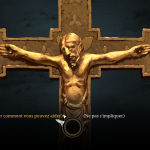 Après ce prologue s’en suit un générique épique qui s’ouvre sur des tintements de cloches avec une épée plantée dans le sol alors qu’un homme pendu vacille au grès du vent. Des édifices, des croix, des statues de saints et des silhouettes se suivent tour à tour sous les chœurs des moines terminant sur une Église avec le titre du jeu. Un générique très bien réalisé qui donne le ton. D’ailleurs, il n’est pas sans rappeler celui de la série télévisée de 2010.