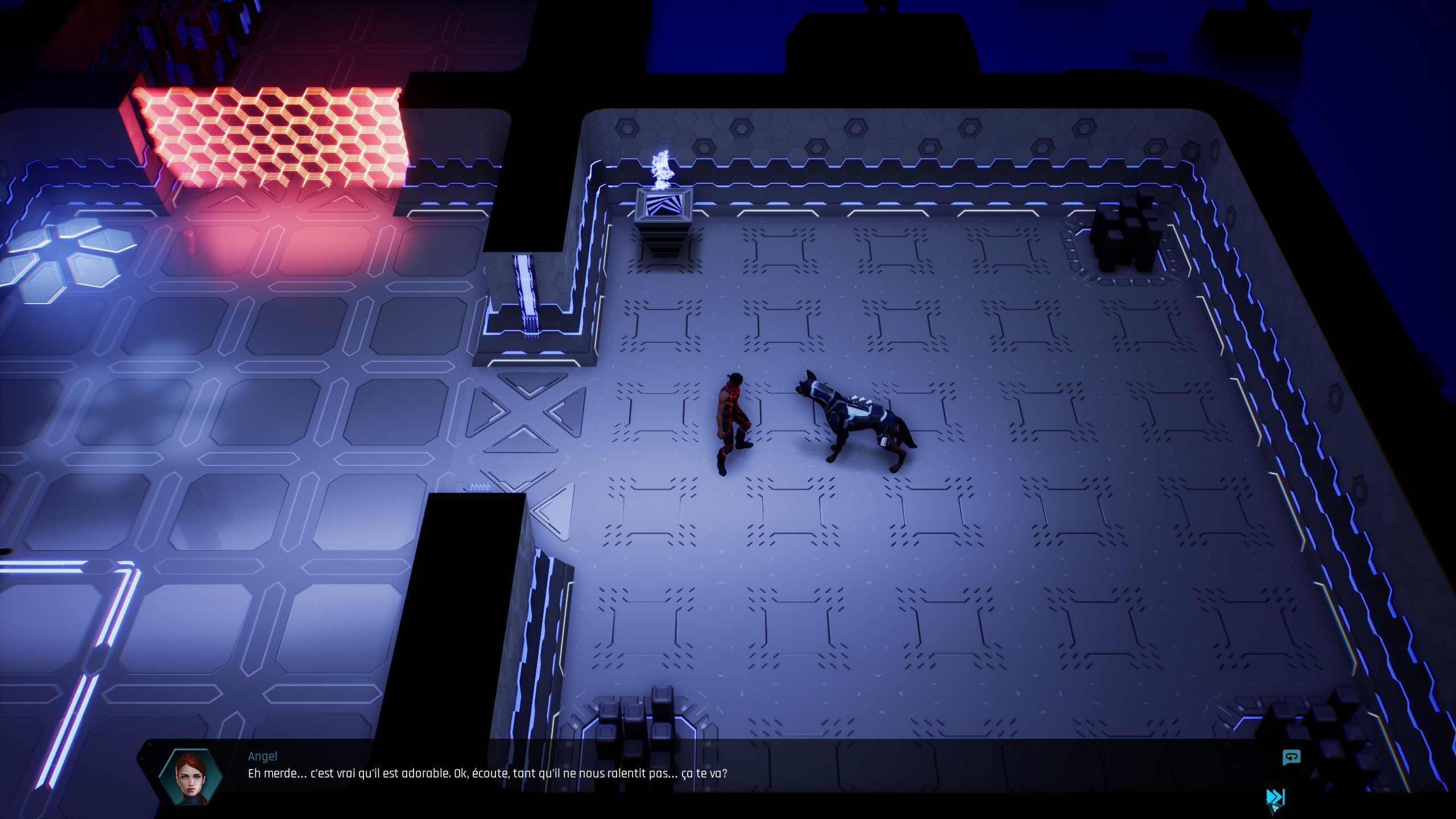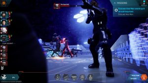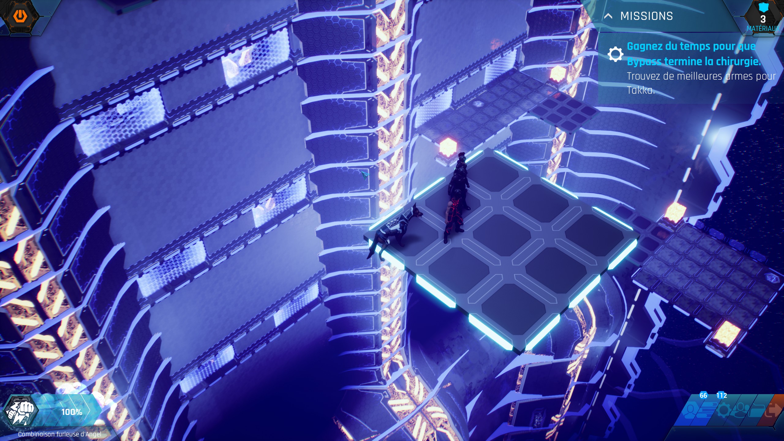 À peine le jeu lancé, on nous introduit l’univers par quatre paragraphes de 3 à 4 lignes. On nous parle d’un gouvernement autoritaire militarisé contrôlant d’une main de fer Terra (là d’où viennent les humains, si tu préfères), d’une utopie fragile (pas de criminalité, de malnutrition, de précarité de logement ou de soin, bref une utopie, t’as compris) d’un gouvernement mondial nommé CONSEIL dont les membres sont anonymes. Qu’il y a 6 mois, le CONSEIL a eu un premier contact avec une espèce extraterrestre, qu’ils ont dissimulé cette information jusqu’à ce que ce ne soit plus possible et qu’ils commandent à la 5e division de les exterminer à tout prix. Cela se poursuit avec une cinématique de la 5e division en route pour la station avec un récapitulatif militaire de la mission à réaliser. On continue avec une cinématique en temps réel où Angel se réveille sur ce qui semble être une table d’opération complètement amnésique. Il ne lui reste plus qu’un implant, une sorte d’oreillette avec lequel elle va communiquer avec Pilot, l’opérateur à distance de sa division. Enfin, on commence avec un premier tutoriel pour se déplacer et bouger la caméra qui débouche rapidement sur un premier combat avec 8 pages de tutoriel dont la majorité est textuelle. Et je n’épilogue pas sur les révélations tardives qui viennent pour certaines après 10h de jeu sur les 14 à 15h proposées.