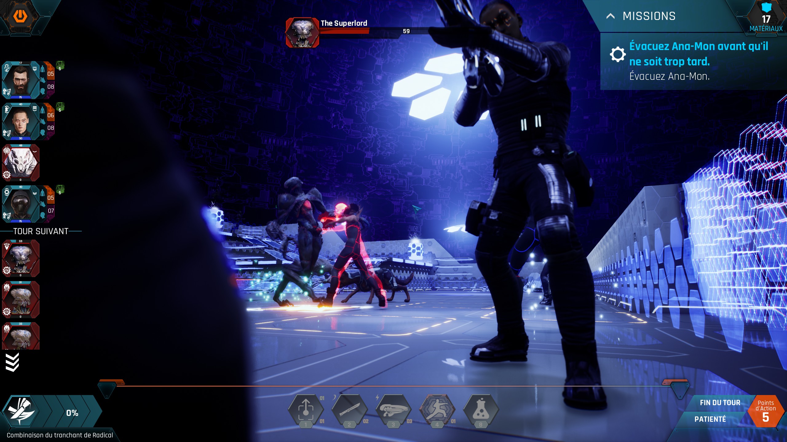 Tous les personnages disposent des mêmes caractéristiques. Celle-ci sont au nombre de 9 et sont réparties en trois parties : Physique, Aptitude et Esprit. Certaines caractéristiques regroupent plusieurs bonus, les rendant trop larges et pas assez spécifiques. Par exemple, voici la description en jeu de « Réflexe » : « capacité à se protéger contre les attaques/vitesse des mouvements, peut augmenter le max de points d’actions d’un personnage« . Ainsi, celle-ci remplit quatre fonctions et son impact est difficilement jaugeable. En effet, en fin de jeu, Radical, un spécialiste fou du couteau, n’a que 2 Points de Mouvement alors qu’il a 16 en « Réflexe » quand ses autres camarades ont 3 ou 4 PM en ayant moins de points dans cette caractéristique. Chose d’autant plus curieuse pour un personnage corps à corps et qui avait 3 PM pendant le tutoriel. En bref, les statistiques manquent de transparence et de cohérence. Les compétences se montent (trop ?) facilement et sont similaires d’une classe à une autre, surtout avec des objets